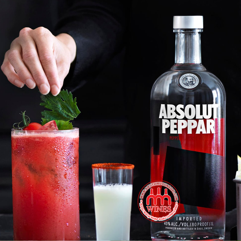 Rượu Absolut Peppar 700ml có chất lượng tốt , mẫu mã sản phẩm đẹp mắt , giá cả phải chăng được Người tiêu dùng Vệt nam đánh giá khá tốt và thường được sử dụng trong những cuộc vui sum họp bạn bè , làm đồ uống trong các bữa tiệc Hiếu , Hỷ hoăc khai vị cho các bữa ăn gia đình , pha chế các loại Cocktail nổi tiếng … Absolut Peppar Bloody Mary Thành phần Absolut Peppar Drop Thành phần |