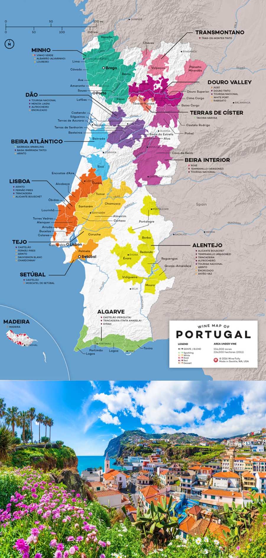 Tổng quan về rượu vang Bồ Đào Nha Phân hạng rượu vang Bồ Đào Nha Vinho wine: Đây là loại rượu có giá rẻ, được bán chủ yếu để phục vụ dân nội địa. Phân loại rượu vang ở quốc gia này Rượu Port của Bồ Đào Nha nổi tiếng thế giới Rượu Port hồng và Port trắng được làm từ những giống nho trắng quý hiếm, mới mẻ có nồng độ nhẹ nhàng và thường được sử dụng để pha chế một số loại cocktail mùa hè thanh mát. Các giống nho sản xuất rượu vang Bồ Đào Nha Một số giống nho trắng phổ biến: Alvarinho: chủ yếu được trồng ở Minho tạo ra rượu vang thơm, giòn với hương đào, táo và trái cây họ cam quýt, có đặc tính khoáng. Aragonez: được gọi là tinta roriz ở miền bắc Bồ Đào Nha (và tempranillo ở Tây Ban Nha). Đây là một trong những loại nho Douro chính được đánh giá cao nhờ chất chát phong phú và hương vị trái cây đỏ, mâm xôi thơm ngon. Douro: Douro là vùng sản xuất rượu vang nổi tiếng nhất Bồ Đào Nha với những cánh đồng nho trải dài trên đồi núi và sườn đá phía bên sông Douro. Đây là nơi sản xuất rượu vang Port nổi tiếng của Bồ Đào Nha, được sản xuất từ giống nho Touriga Nacional và Tinta Roriz. Với vị ngọt đậm đà, hương vị mạnh mẽ và màu sắc đỏ thẫm, rượu vang Douro là một trong những dòng vang được yêu thích hàng đầu trên thế giới. |