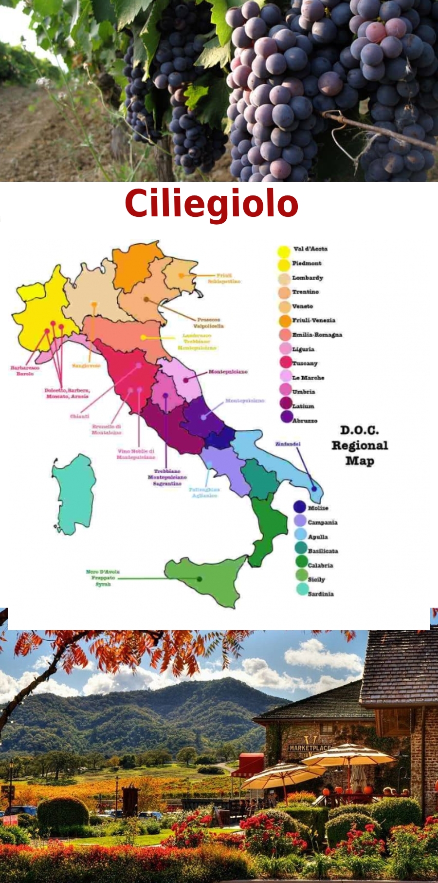 Giới thiệu về Ciliegiolo – Linh hồn trong chai rượu vang đỏ Ciliegiolo Maremma Toscana DOC Rượu vang Ciliegiolo Maremma Toscana DOC được lên men từ 100% giống nho đỏ địa phương Ciliegiolo. Ngược dòng thời gian về những thập kỉ trước, giống nho đỏ của miền Tây Bắc nước Ý vẫn rất mới lạ chưa được nhiều người biết tới nhưng hiện tại nó đang trong giai đoạn phát triển tại quê hương Tuscany. Ciliegiolo ngày cang được sử dụng nhiều trong các loại rượu vang đỏ DOC phía Tây nước Ý bao gồm Chianti Colli di Luni và Montecarlo, Colline di Levanto, Golfo di Tigullio… Bên cạnh đó, số lượng rượu vang IGT đa dạng được làm từ Ciliegiolo đã tăng lên đáng kể kể từ năm 2000. Tên gọi của giống nho này xuất phát từ tiếng Ý có nghĩa là anh đào, một loại trái cây mà rượu vang lên men từ giống nho này mang đặc trưng về cả màu sắc và hương thơm tương tự. Chính đặc tính này đã thúc đẩy sự phục hưng của cây nho, vì giống nho này mang lại sự tươi mát và đặc tính sống động nhất định cho các loại rượu vang nặng. Trong một thế giới ngày càng đòi hỏi những loại rượu vang uống sớm nhưng vẫn đầy đủ đặc tính, nho Ciliegiolo đã cung cấp một sự bổ sung tuyệt vời cho những loại rượu vang cần được ủ trong hầm. Trong vườn nho, Ciliegiolo dễ bị bệnh nấm mốc đòi hỏi sự tỉ mỉ chăm sóc từ những người trồng nho. Lịch sử ban đầu của Ciliegiolo không được ghi chép rõ ràng, mặc dù nhiều nguồn khác nhau cho rằng nó đến từ Tây Ban Nha.Các từ đồng nghĩa bao gồm: Brunellone, Criminese, Riminese, Sangiovese Polveroso Bonechi. Nguồn gốc và mối quan hệ với giống nho Sangiovese Một số truyền thuyết cho rằng giống nho Ciliegiolo có nguồn gốc từ Tây Ban Nha và du nhập vào Ý , nhưng mối liên hệ di truyền giữa Ciliegiolo và Sangiovese hầu như không thể dung hòa với nguồn gốc Tây Ban Nha. Đặc điểm nổi bật của giống nho Ciliegiolo Về cấu trúc, Ciliegiolo cho ra rượu vang có thân trung bình, tannin mềm mại và độ chua tươi mát. Chính sự cân bằng này khiến vang từ Ciliegiolo dễ uống và thân thiện, phù hợp cho cả những người ít kinh nghiệm về rượu vang. Đây cũng là lý do nó được ưa chuộng để uống hàng ngày hoặc kết hợp với nhiều món ăn khác nhau. Màu sắc của rượu vang Ciliegiolo thường là đỏ ruby tươi, đôi khi ngả hồng ngọc hoặc tím tùy độ tuổi. Sự trong trẻo về màu sắc kết hợp cùng hương vị nhẹ nhàng nhưng sâu lắng đã giúp giống nho này khẳng định vị trí riêng trong thế giới vang Ý. Ciliegiolo còn được đánh giá cao bởi tính linh hoạt trong ẩm thực. Với độ chua vừa phải và hậu vị trái cây sạch sẽ, nó dễ dàng kết hợp cùng pasta, các món thịt trắng, thịt nguội, xúc xích hay phô mai cứng. Đặc biệt, khi được phục vụ hơi lạnh, rượu vang Ciliegiolo càng bộc lộ rõ nét sự tươi mát và tinh tế. Các vùng chính của giống nho Ciliegiolo Vùng trồng chính |